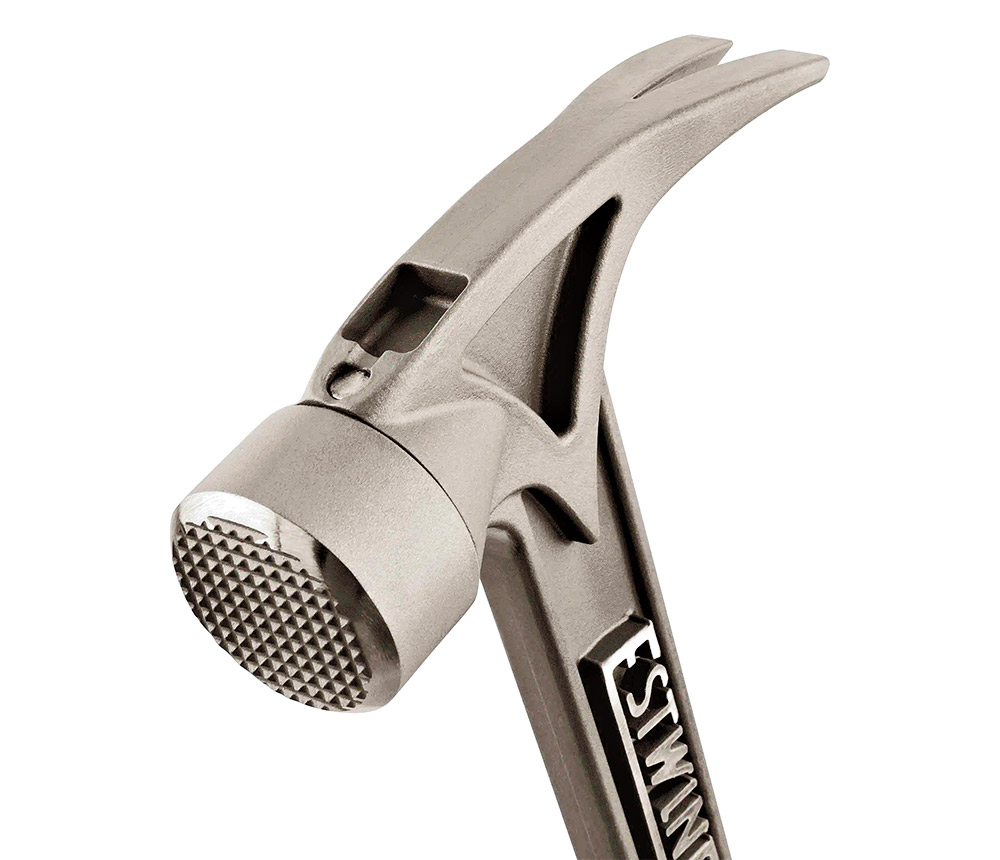 Power meets precision in a lightweight design with this titanium hammer. It delivers the striking force of a heavier steel hammer without the added weight. The magnetic nail starter makes setting nails quick and easy. The Shock Reduction Grip provides comfort and durability by reducing vibrations caused by impact. Well balanced for reduced fatigue. estwing.com