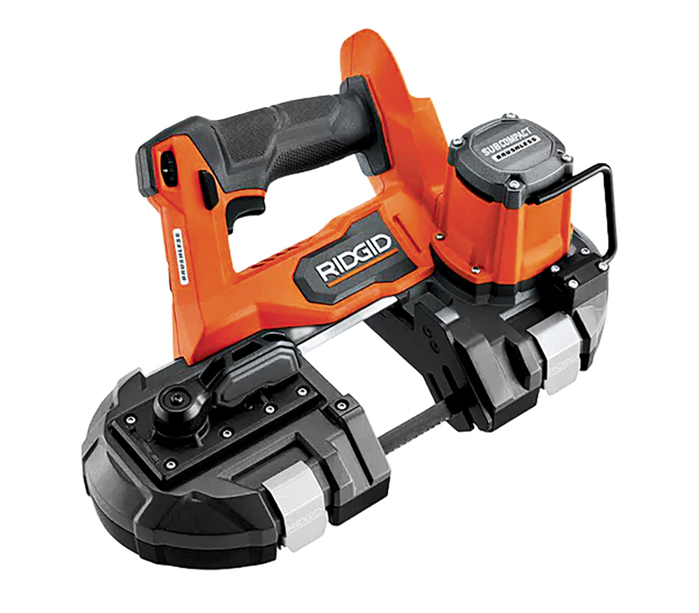 The Ridgid 18V SubCompact Brushless 2.5-in. bandsaw has a lightweight, ergonomic design for one-handed use with the capability to cut through a variety of materials, and reduces fatigue when using overhead. Cut material such as conduit, pipe, rod, strut, angle iron, rebar and more with speeds up to 580 SFPM and a cut capacity of 2.5 in. The variable speed dial and trigger provide control and speed customization. It is 100-per-cent compatible with all Ridgid 18V batteries. The saw also includes a bi-metal TPI blade and hex key. Battery and charger sold separately.
